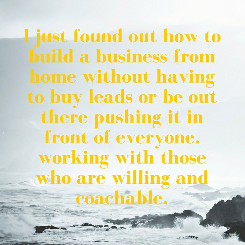 😀❤👍 I just found out how to build a business from home without having to buy leads or be out there pushing it infront of everyone. Working with those who are willing and coachable. Let us know to learn more.