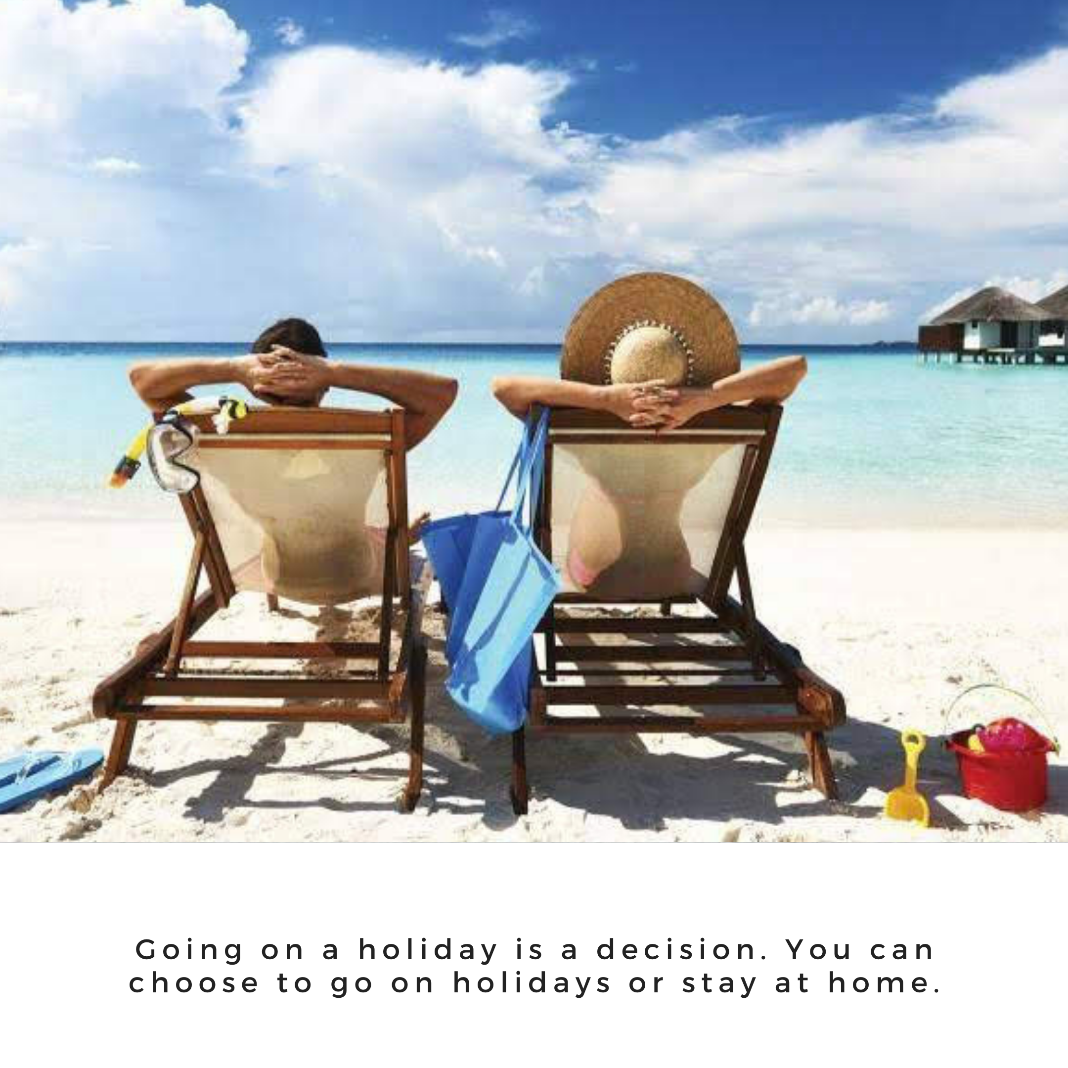 👨👩👧👦💙😀 Going on holidays is a decision. You can choose to stay at home or go on holidays. The choice is yours.