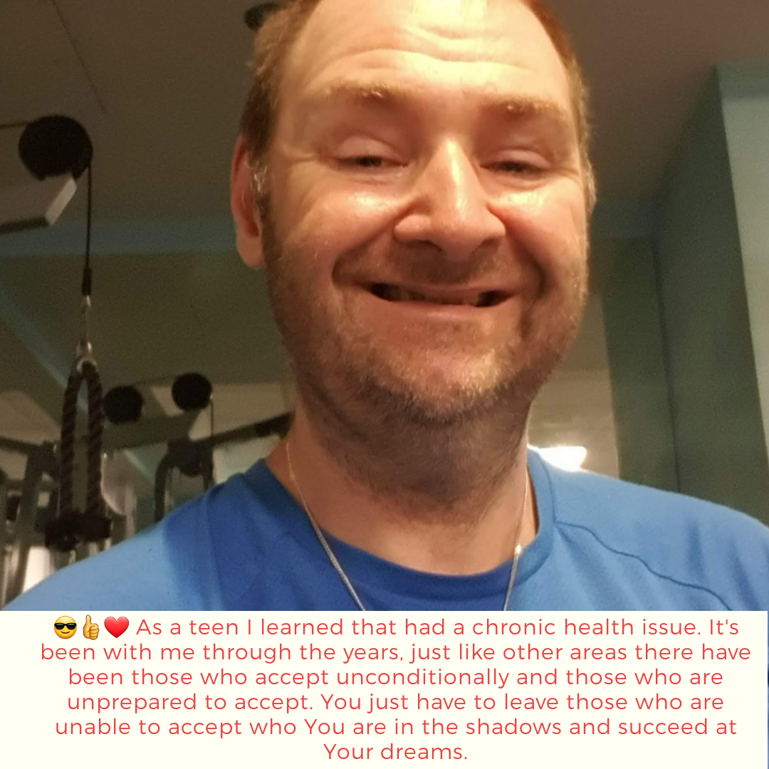 ❤👍👨👩👧👦 As a teen I learned that had a chronic health issue. It's been with me through the years, just like other areas there have been those who accept unconditionally and those who are unprepared to accept. You just need who You are in the shadows and succeed at Your dreams.