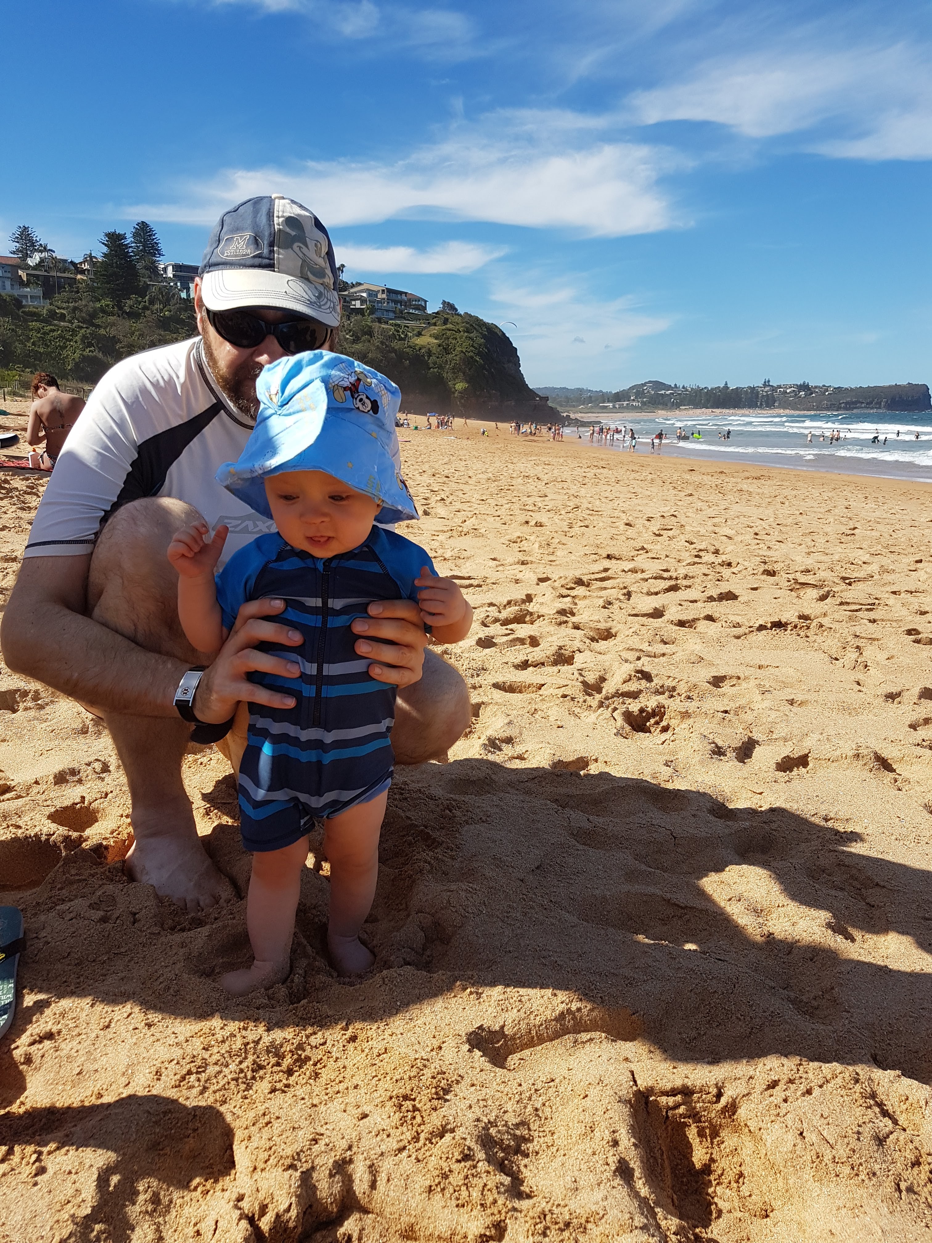 👍💙👨👩👧👦 Our bubba J has grown so fast, first time at beach and was getting used to water. Now he loves his water play.