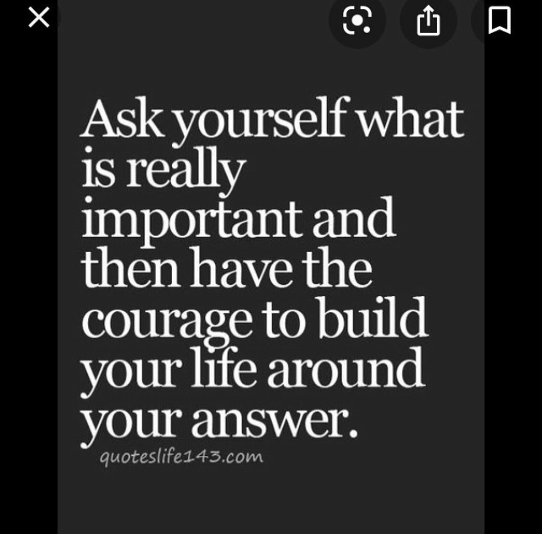 👪😀💙 That is the best and a huge question that each of us needs to answer. It could be music, family, health, love, friends, money or a lot of other areas. have the courage to find what is truly important and create a life working around that.