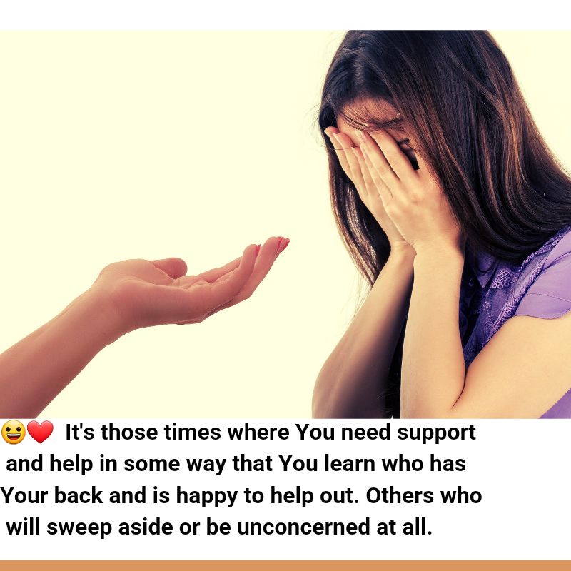 💙😃👍 It's those times in life where You learn who really has Your back just like the last 24 hours have shown. Those who are more than happy to assist when you need it. They will turn up saying if you need anything let me know, You call and their happy to help out and do what they can to assist. Others who really are unprepared to be worried, they will be unconcerned or unbothered.