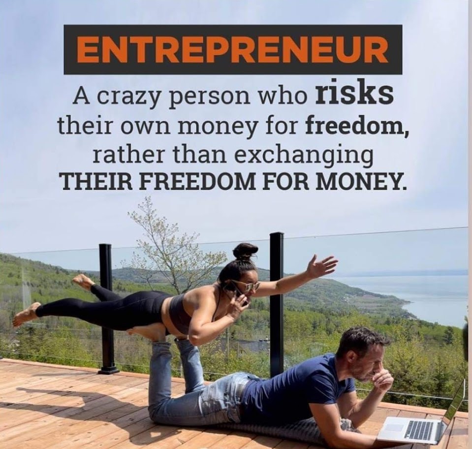 😀👍💙 A big truth in relation to an entrepreneur who is a person that risks so much to create freedom for themselves and even their families. Those who they care deeply about.