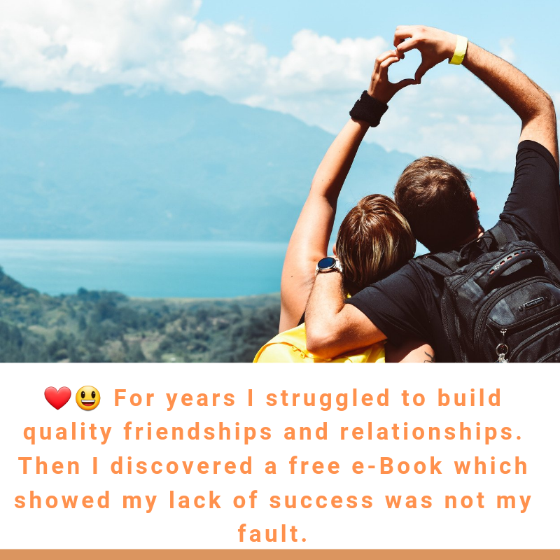 ❤😃 For years I struggled to build quality friendships and relationships. Then I discovered a free e-Book which showed my lack of success was not my fault. You can learn to create quality relationships too, if you choose to.