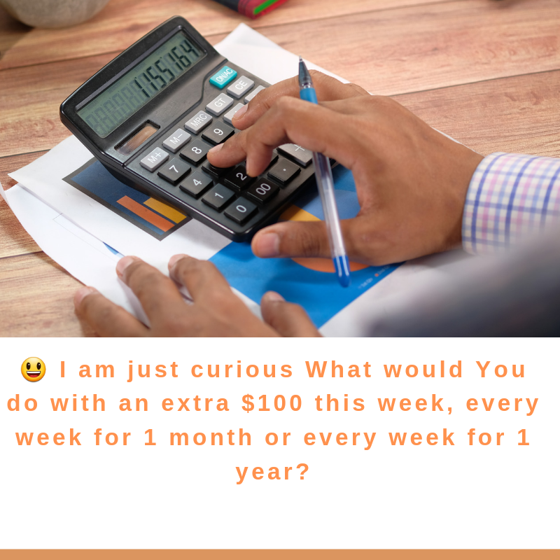 😃 I am just curious What would You do with an extra $100 this week, every week for 1 month or every week for 1 year?