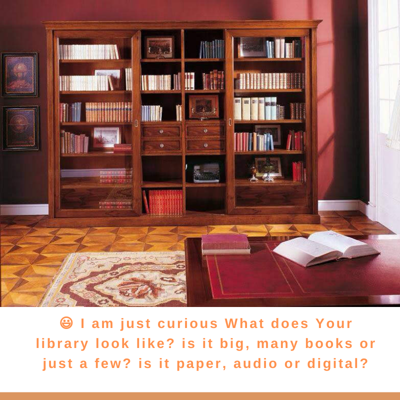 😃 I am just curious What does Your library look like? is it big, many books or just a few? is it paper, audio or digital?