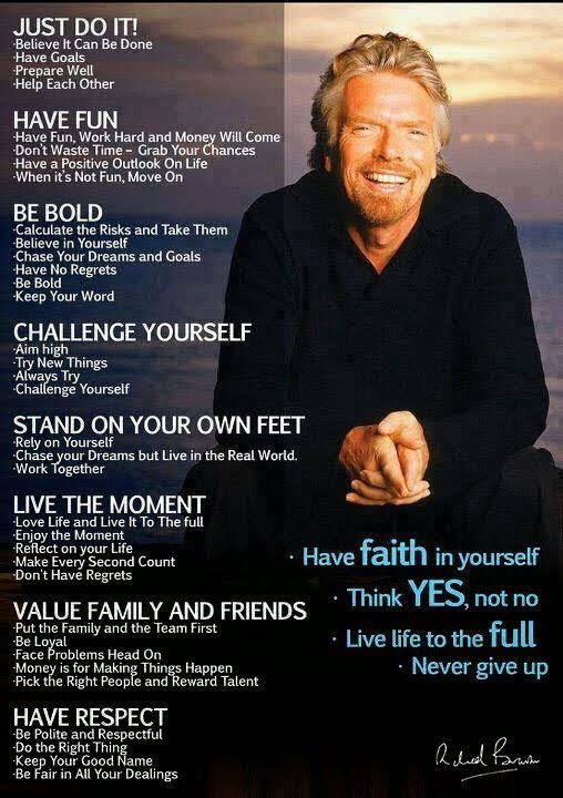 😃👨👩👦👍 A huge truth from Richard Branson on success with life and goals.