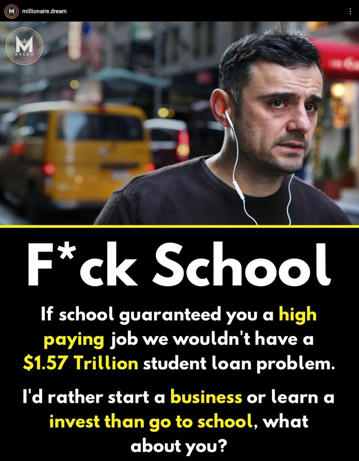 👨👩👦😃👍 Yep I'd definitely rather learn to build a business rather than sitting around at school.