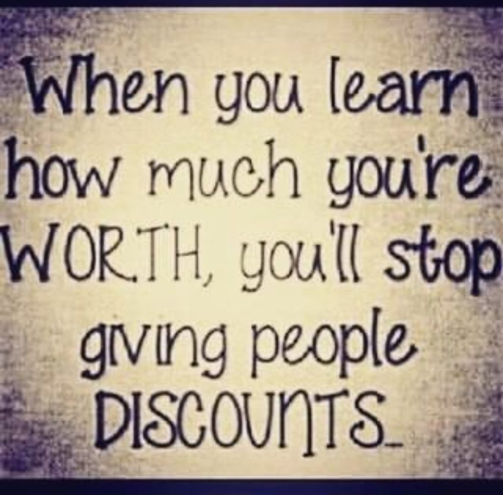 👨👩👦👍😃 Exceptionally true, You have to stop giving people discounts on Your worth as a person.