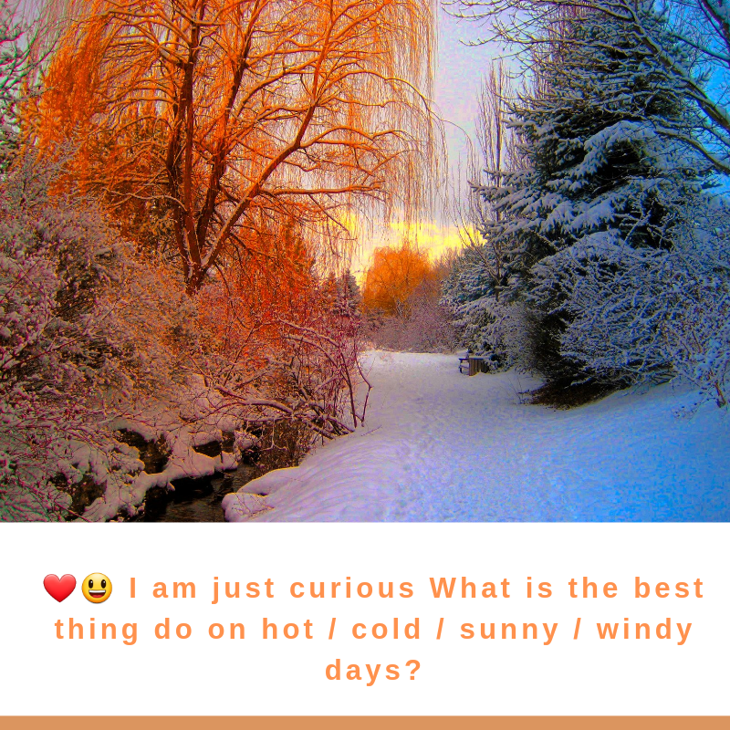 ❤😃 I am just curious What is the best thing do on hot / cold / sunny / windy days?