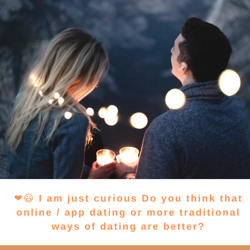 ❤😃 I am just curious Do you think that online / app dating or more traditional ways of dating are better?