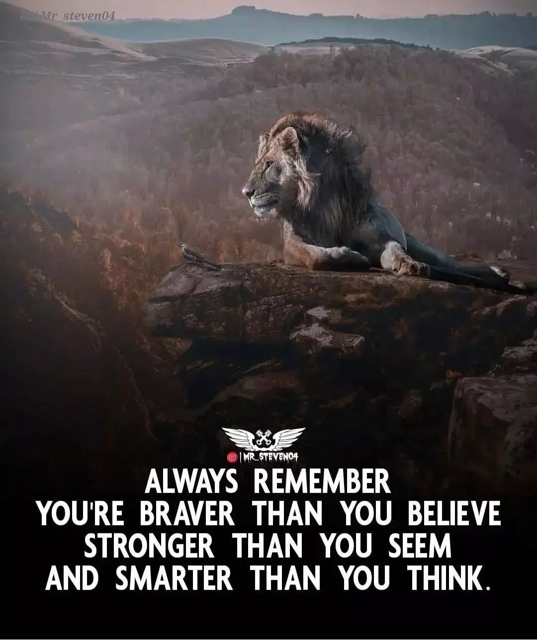 💙😃👨👩👦 An amazing powerful truth about Yourself. You need to remember that You are braver, You ate stronger and smarter than You know You are?
