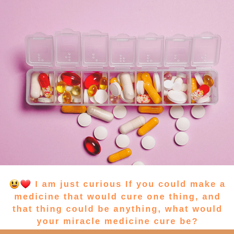 😃❤️ I am just curious If you could make a medicine that would cure one thing, and that thing could be anything, what would your miracle medicine cure be?