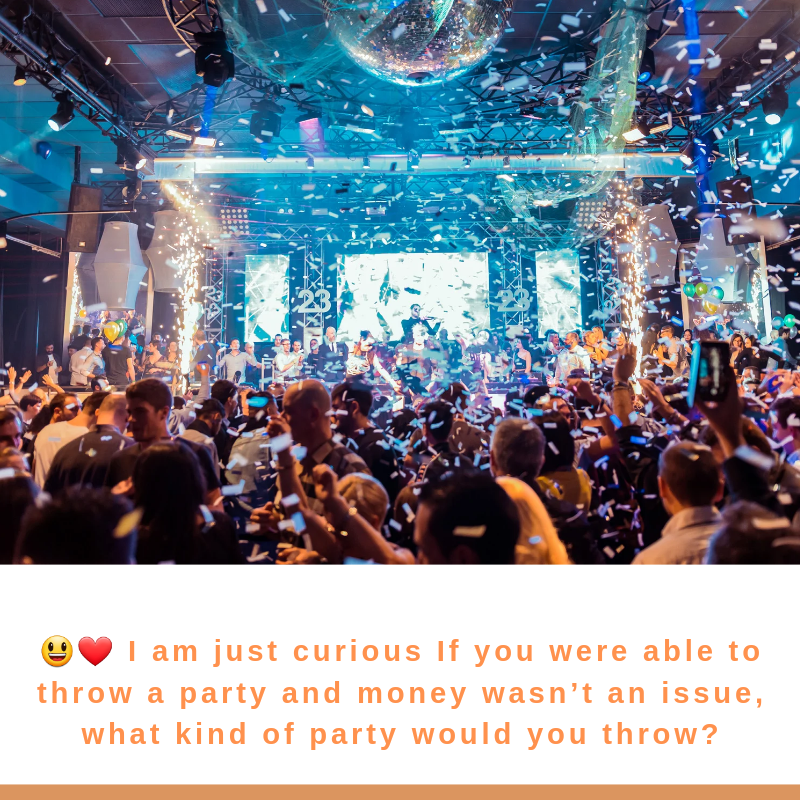 😃❤️ I am just curious If you were able to throw a party and money wasn’t an issue, what kind of party would you throw?