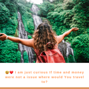 😃❤️ I am just curious If time and money were not a issue where would You travel to?