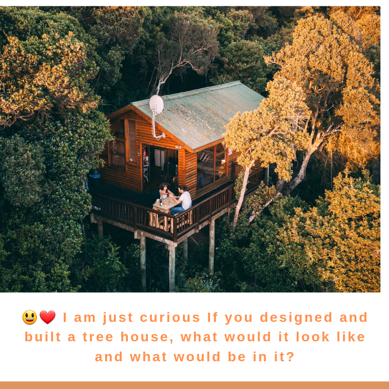 😃❤️ I am just curious If you designed and built a tree house, what would it look like and what would be in it?