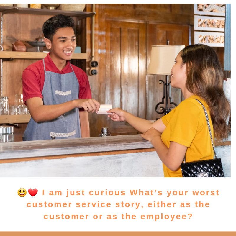 😃❤️ I am just curious What’s your worst customer service story, either as the customer or as the employee?