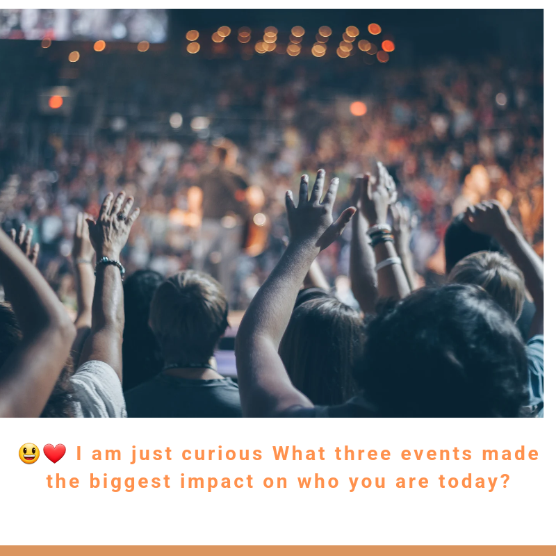 😃❤️ I am just curious What three events made the biggest impact on who you are today?