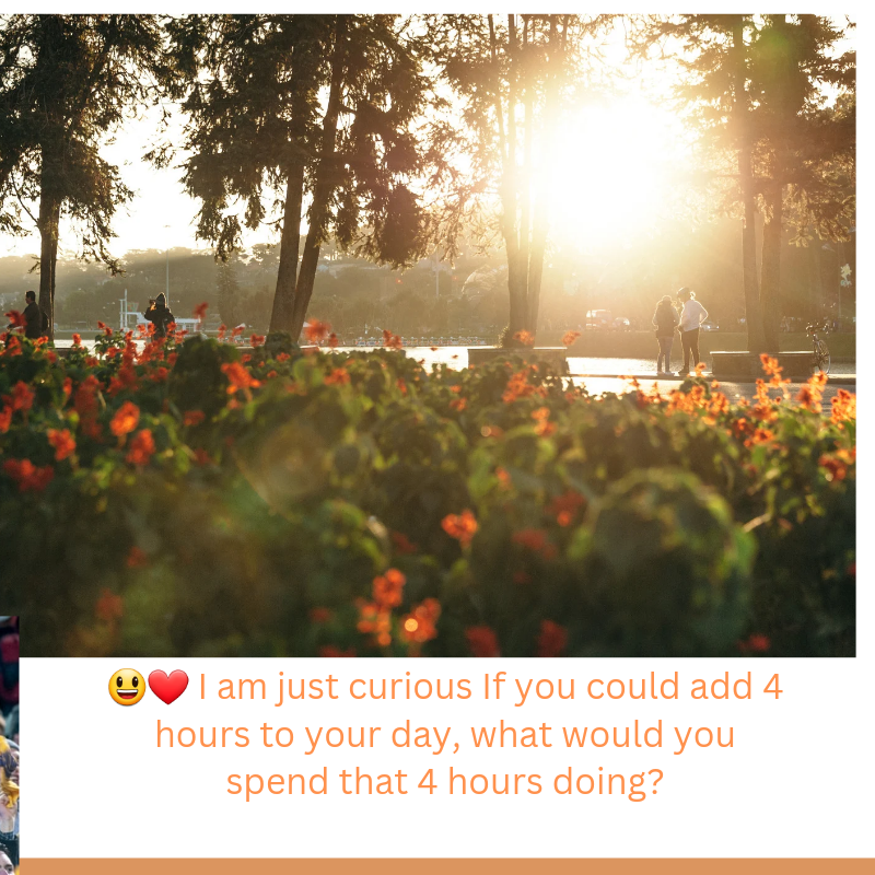 😃❤️ I am just curious If you could add 4 hours to your day, what would you spend that 4 hours doing?