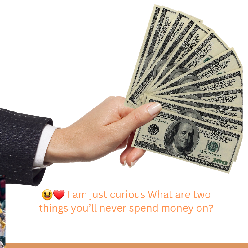 😃❤️ I am just curious What are two things you’ll never spend money on?
