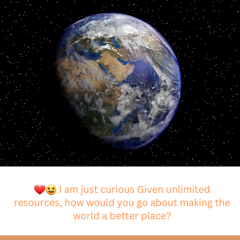 ❤️😀 I am just curious Given unlimited resources, how would you go about making the world a better place?