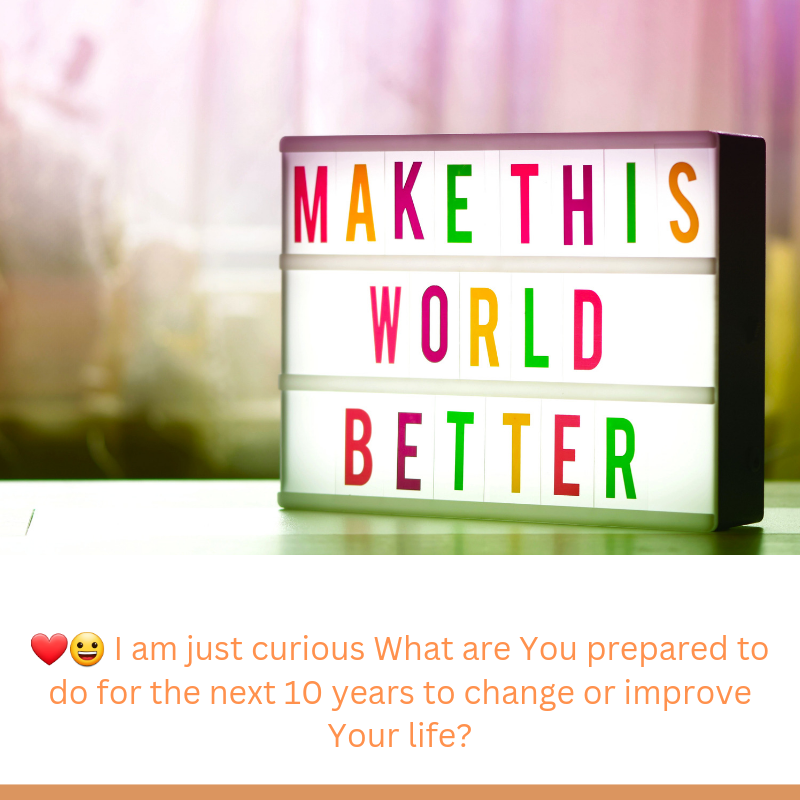❤️😀 I am just curious What are You prepared to do for the next 10 years to change or improve Your life?