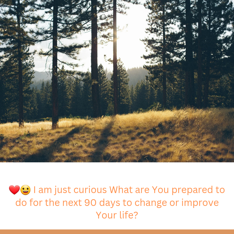 ❤️😀 I am just curious What are You prepared to do for the next 90 days to change or improve Your life?