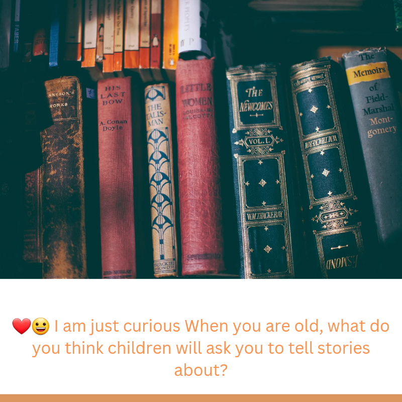❤️😀 I am just curious When you are old, what do you think children will ask you to tell stories about?