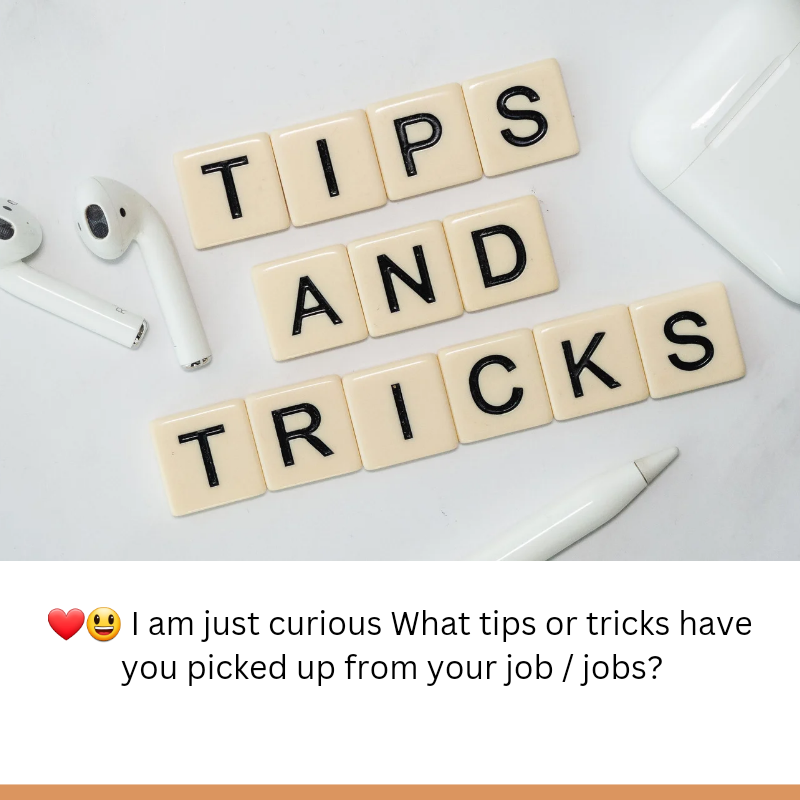 ❤️😃 I am just curious What tips or tricks have you picked up from your job / jobs?