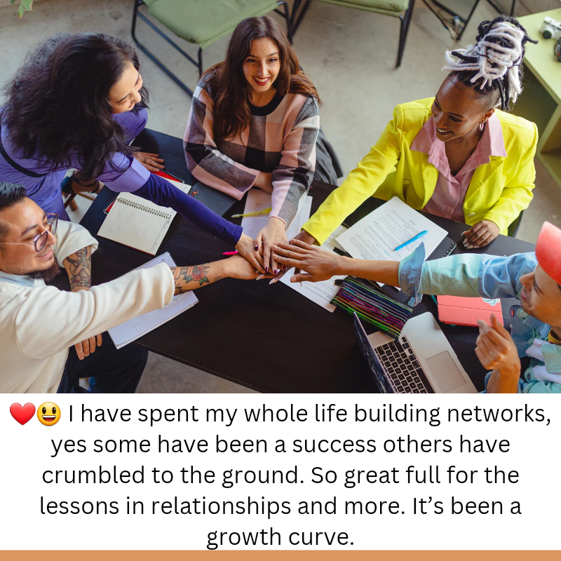 ❤️😃 I have spent my whole life building networks, yes some have been a success others have crumbled to the ground. So great full for the lessons in relationships and more. It’s been a growth curve.