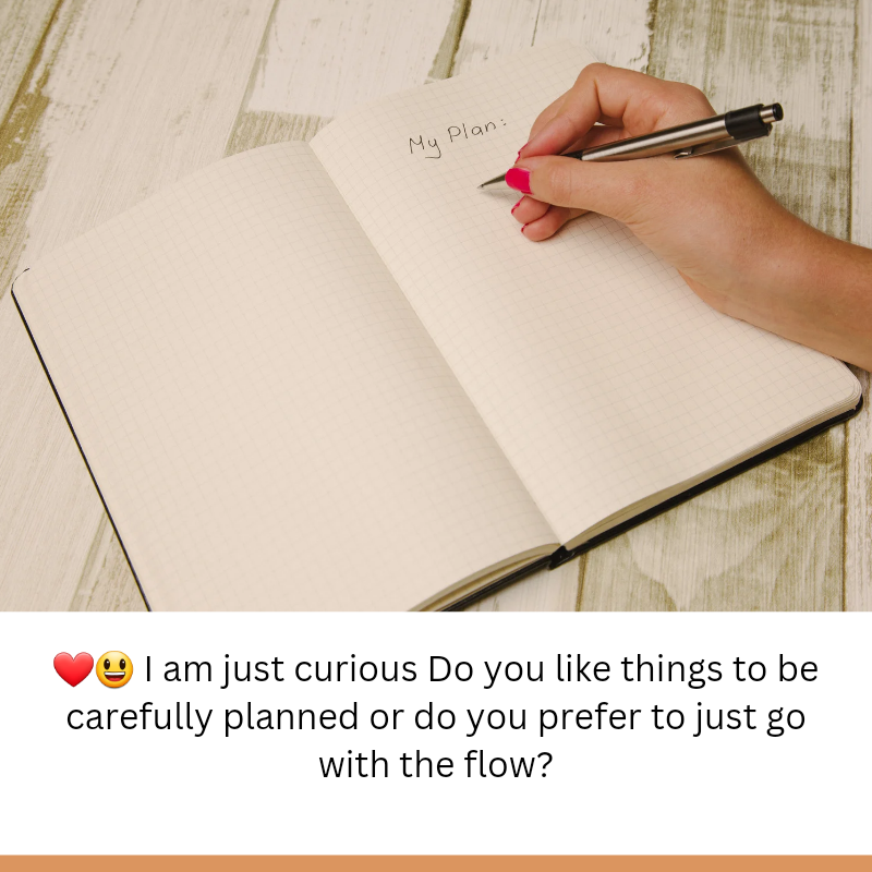 ❤️😃 I am just curious Do you like things to be carefully planned or do you prefer to just go with the flow?