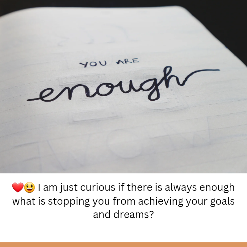 ❤️😃 I am just curious if there is always enough what is stopping you from achieving your goals and dreams?
