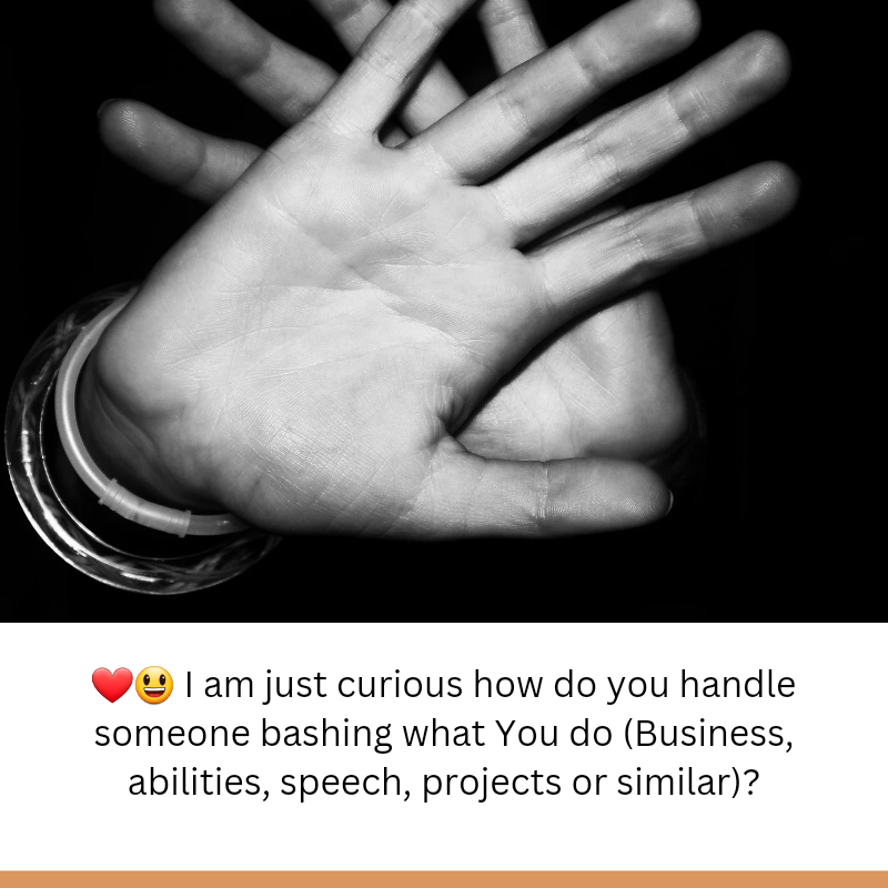 ❤️😃 I am just curious how do you handle someone bashing what You do (Business, abilities, speech, projects or similar)?