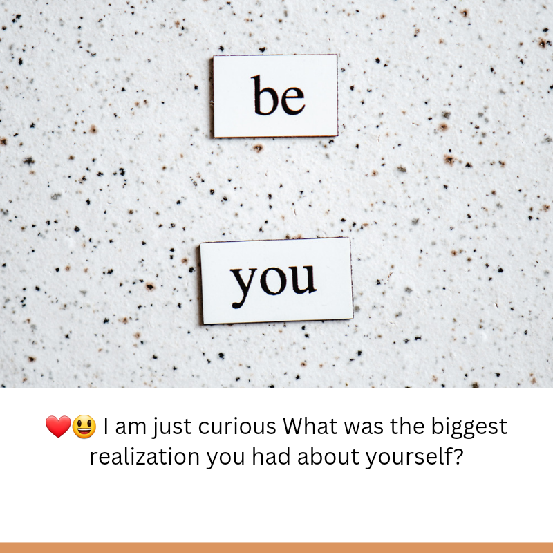 ❤️😃 I am just curious What was the biggest realization you had about yourself?