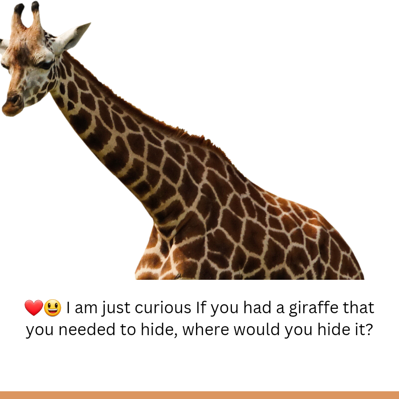 ❤️😃 I am just curious If you had a giraffe that you needed to hide, where would you hide it?