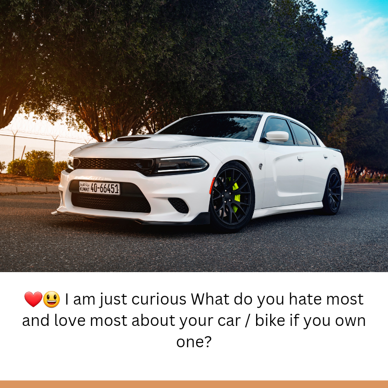 ❤️😃 I am just curious What do you hate most and love most about your car / bike if you own one?