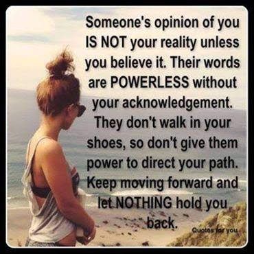 👨👩👧👦👩❤️👩😊 Definitely someone's opinion of you is not who you are unless you let it become such.