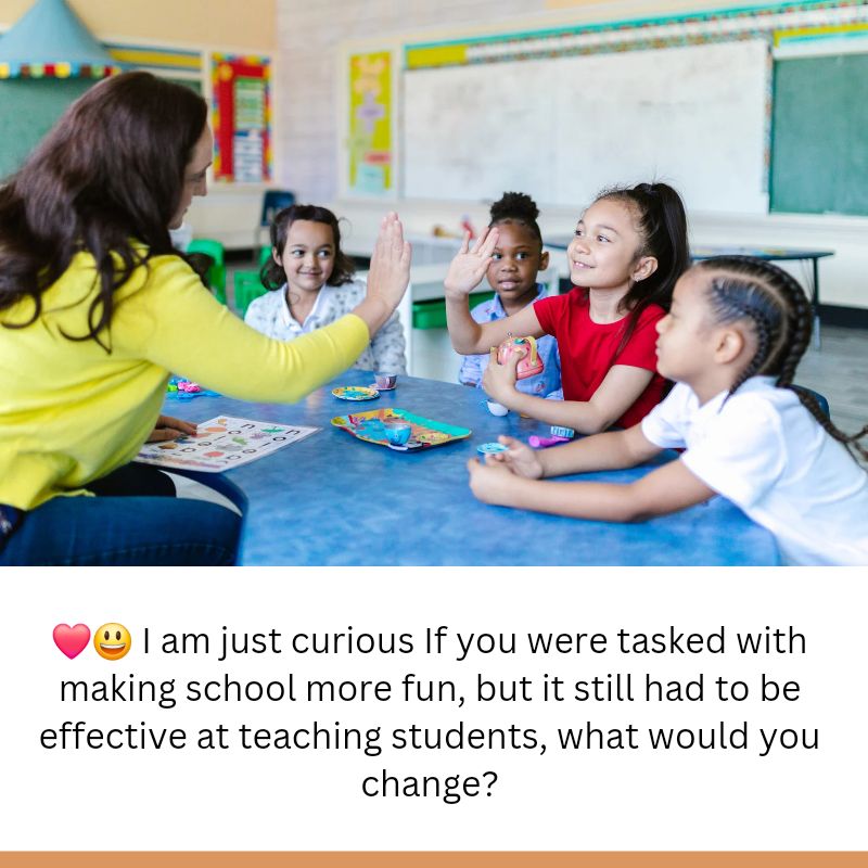 ❤️😃 I am just curious If you were tasked with making school more fun, but it still had to be effective at teaching students, what would you change?
