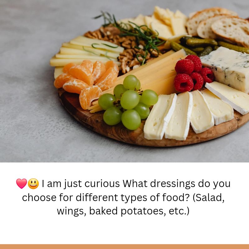 ❤️😃 I am just curious What dressings do you choose for different types of food? (Salad, wings, baked potatoes, etc.)