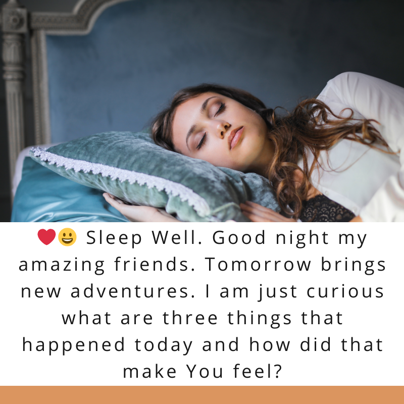😃🛌😴 ❤😀 Sleep Well: Good night my amazing friends. Sleep well, for tomorrow brings new adventures. We love and appreciate You all, thank you for being an amazing friend. I am just curious 3 things that happened to You today and how did that make You feel?