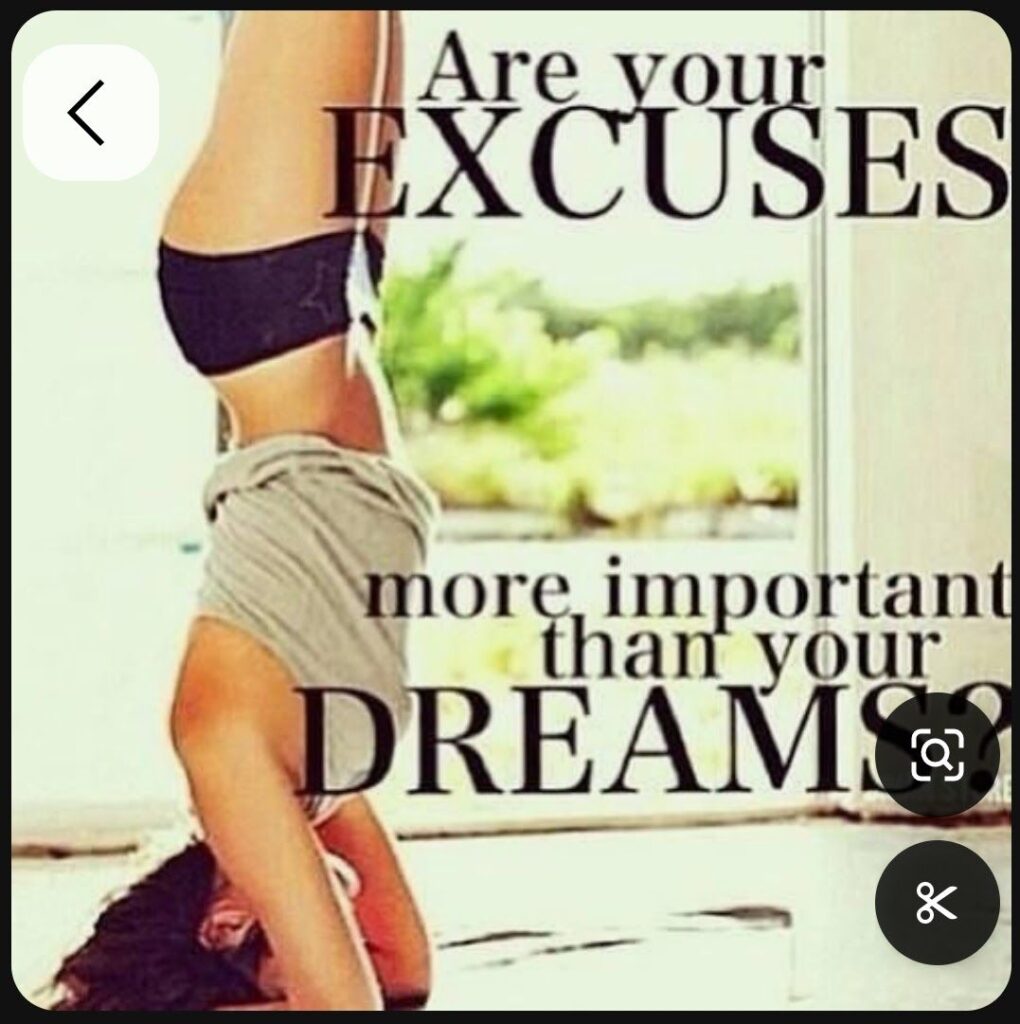😃🏋♂️👍 That's a huge question. Are your excuses more, important than your dreams?