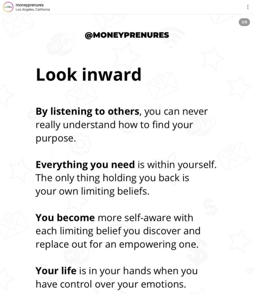 Remember auto-suggestion can easily come from family, friends or any other means through their self talk or how they speak to you. We must be careful what we take on board. Be careful of b who we listen to and even talk to are they positive or negative influences.