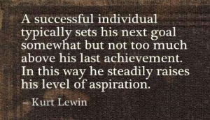 "A successful individual typically sets his next goal somewhat but not too much above his last achievement. In this way he steadily raises his level of aspiration." - Kurt Lewin
