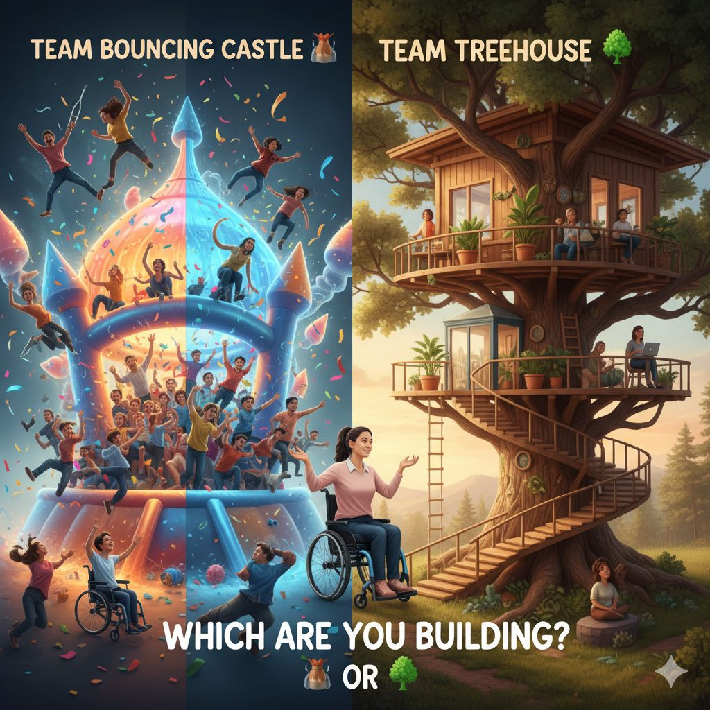 🔥 My Question For You: Which are you building right now: Team Bouncy Castle 🏰 or Team Treehouse 🌳? And which one do you want to be building for long-term success and health?