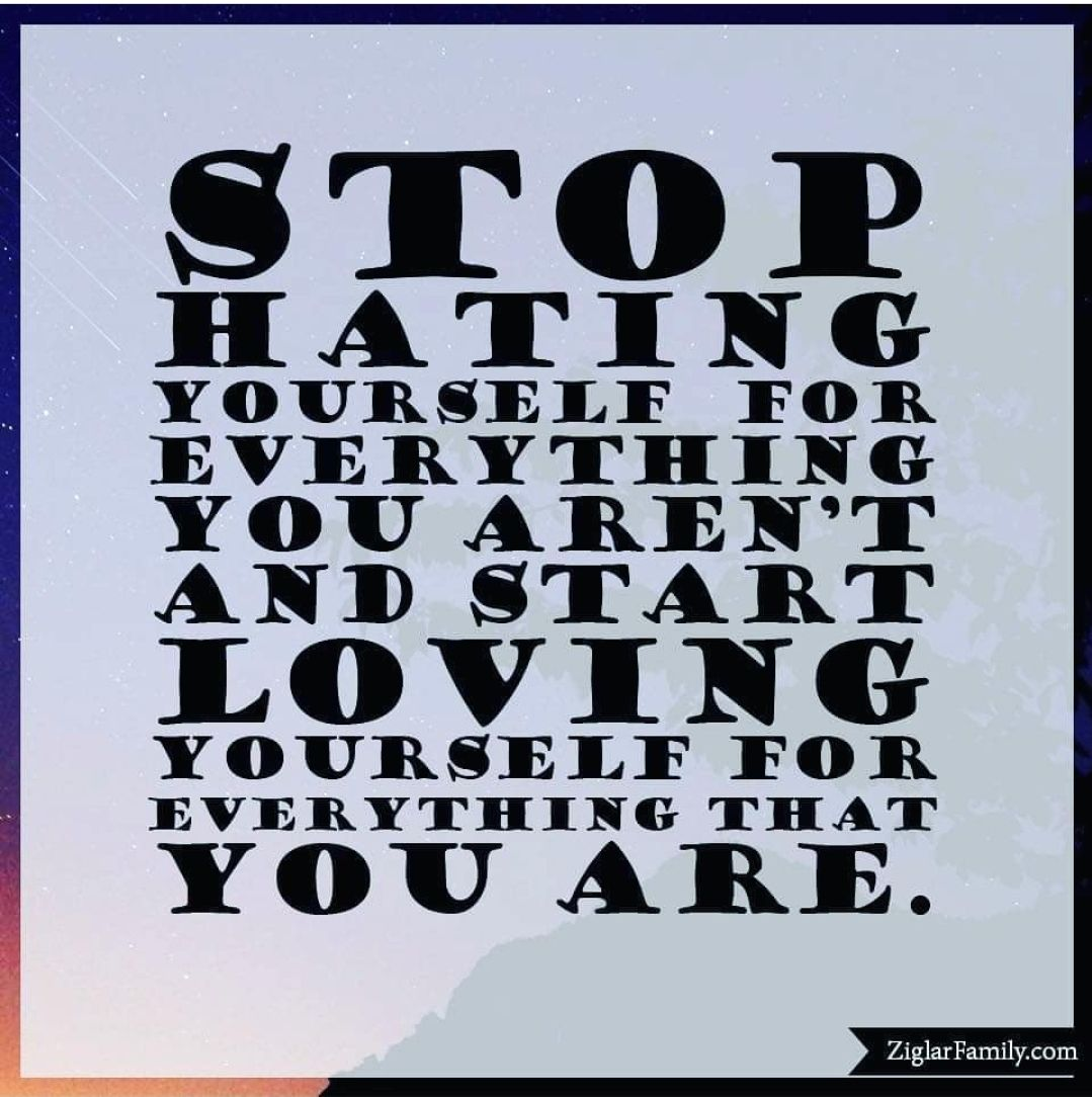 "STOP HATING YOURSELF FOR EVERYTHING YOU AREN'T AND START LOVING YOURSELF FOR EVERYTHING THAT YOU ARE."