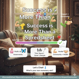 In this era, true success is Sovereignty. 🦋 It’s the ability for a #Mumprenur to never miss a school play. It’s a #Dadpreneur being present for the bedtime stories. For those of us in the #Disabled community or living with #ChronicIllness, success is the "Spoon-Saver" lifestyle—having a business that bows to your health, not the other way around. 🥄💪