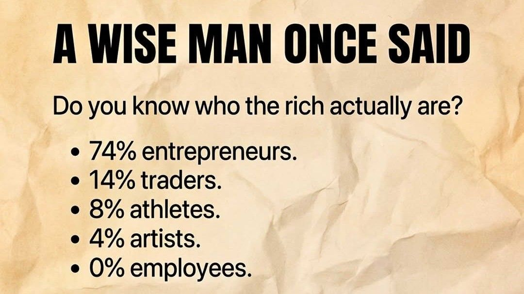 If you're chasing true wealth, this insight from a "wise man" might just be the push you need. The path to riches, statistically, leads away from traditional employment and towards building your own empire or mastering a craft. Time to rethink your strategy?