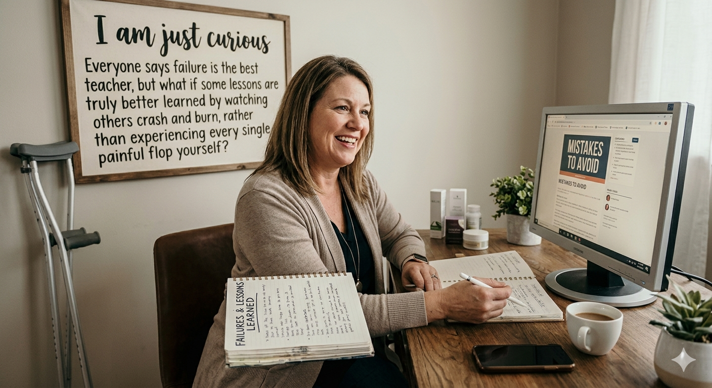 But when you’re balancing a business with **chronic health flares**, or trying to build an empire while the kids are literally climbing the walls, do we really have the “spoons” or the time to experience every single painful flop firsthand? 🥄📉