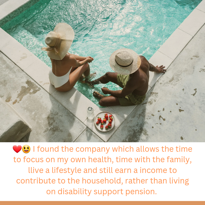 โค๏ธ๐ I found the company which allows the time to focus on my own health, time with the family, llive a lifestyle and still earn a income to contribute to the household, rather than living on disability support pension.