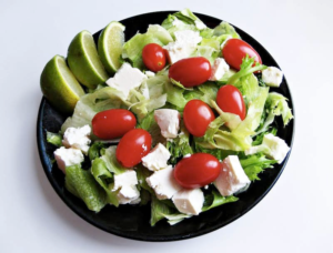 A burst of freshness! 🥗 This simple yet vibrant salad with crisp lettuce, juicy cherry tomatoes, creamy feta, and a zesty squeeze of lime is perfect for a light and healthy meal.